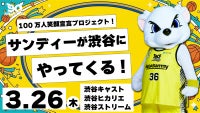 【100万人笑顔宣言プロジェクト】3/26(木) 渋谷キャスト・ヒカリエ・ストリームの3カ所にサンディーが登場!グリーティング実施のお知らせ