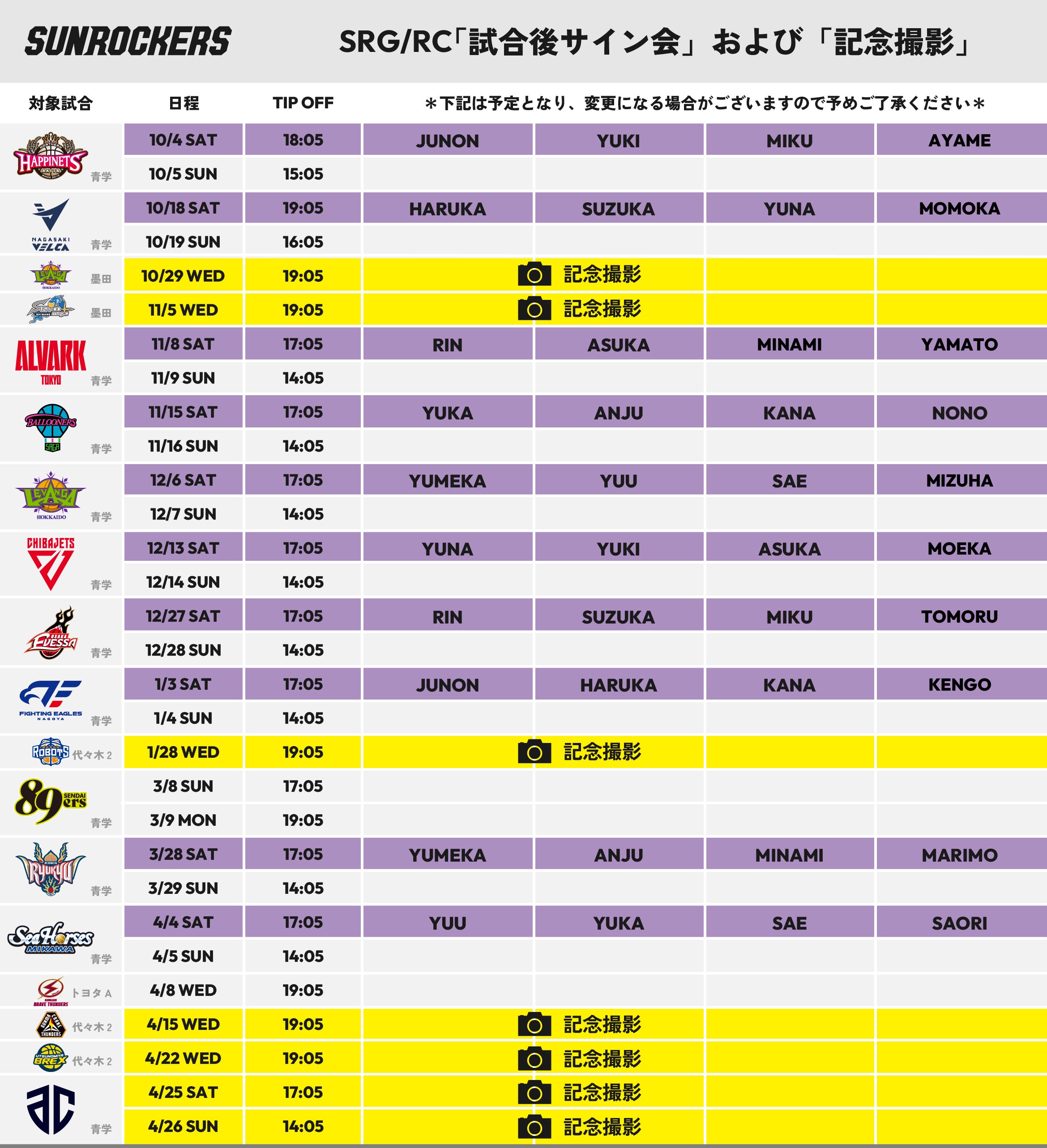 サンロッカーガールズ&428 ROCK CREW試合後サイン会・記念撮影イベントご案内