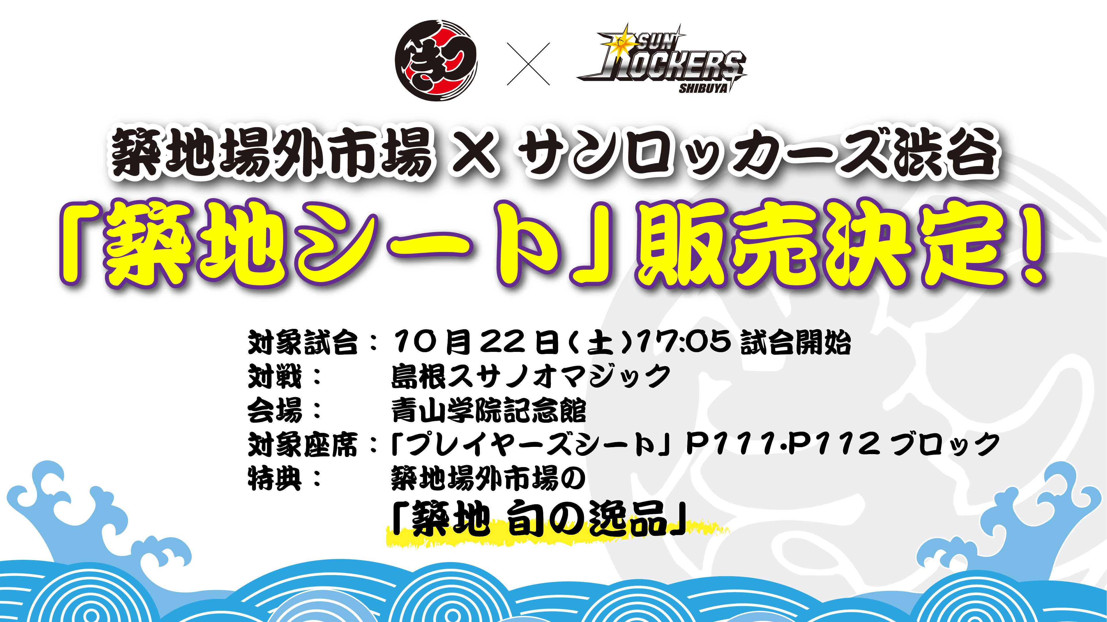 10/22(土) 築地場外市場×サンロッカーズ渋谷 コラボ「築地シート」販売決定!
