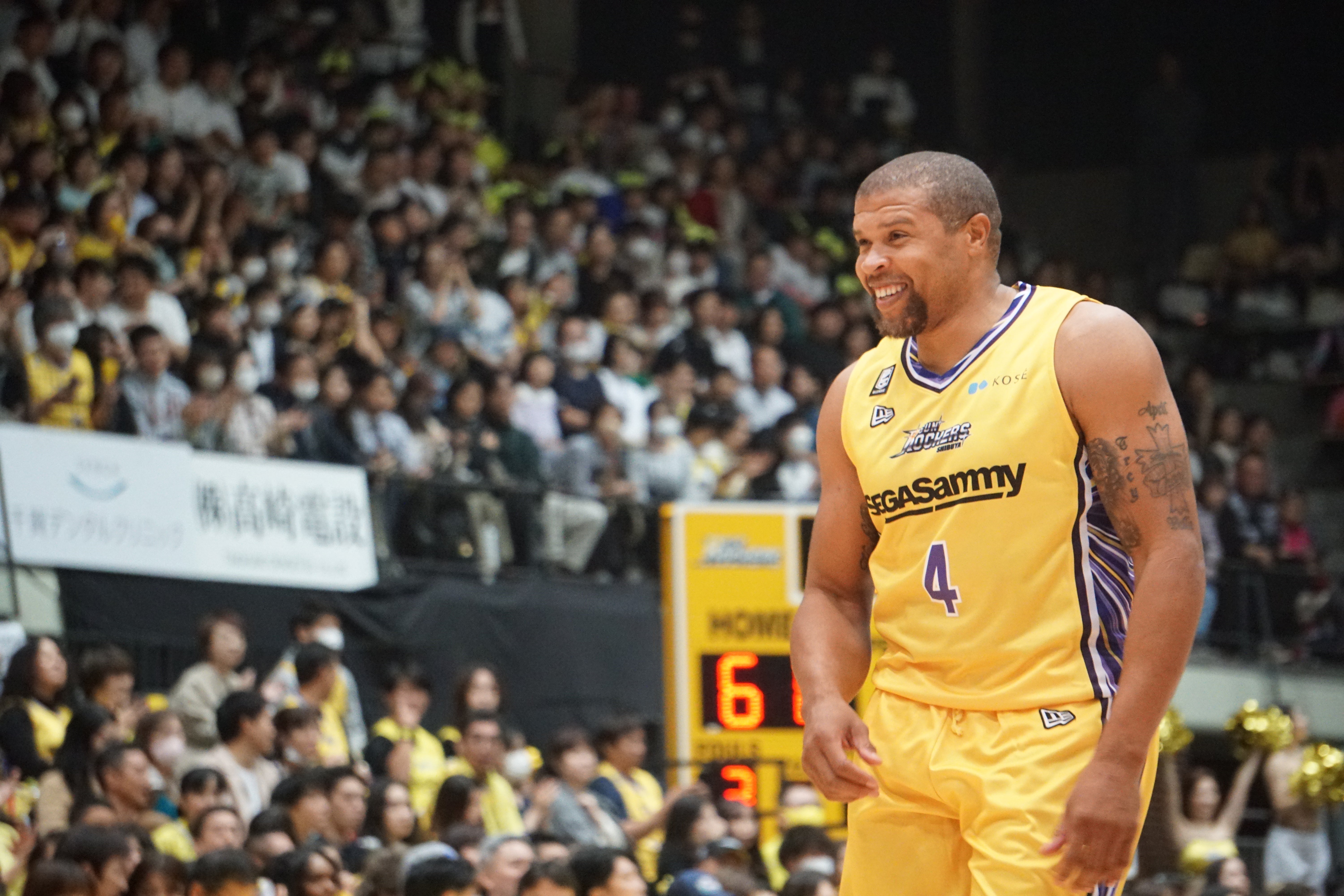 ギブス選手は2010年に来日以来、日本でプレーを続ける43歳のベテラン選手で、アメリカンフットボールで培った強靭な身体でインサイドで体を張り、跳躍力と長いウィングスパンを生かして188㎝の身長ながらビッグマンとして常に第一線で活躍しておりました。