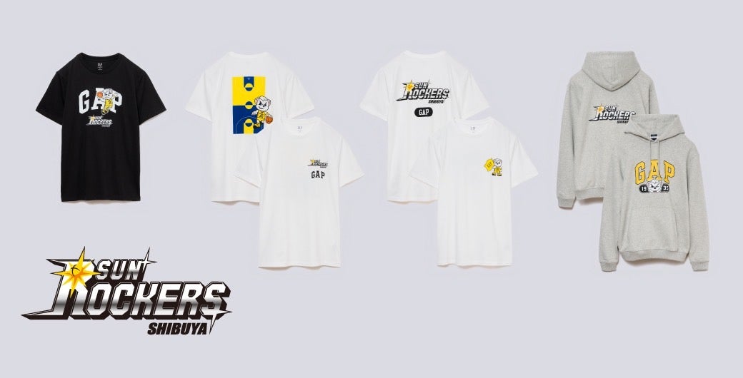 本コラボレーションでは、サンロッカーズ渋谷マスコット「サンディー」とGAPロゴをあしらったTシャツおよびパーカーを、10月3日(金)よりGAPの一部店舗にて数量限定で販売いたします。