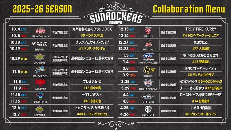 会場で選手コラボメニューを食べて、サンロッカーズ渋谷を熱く応援しましょう!