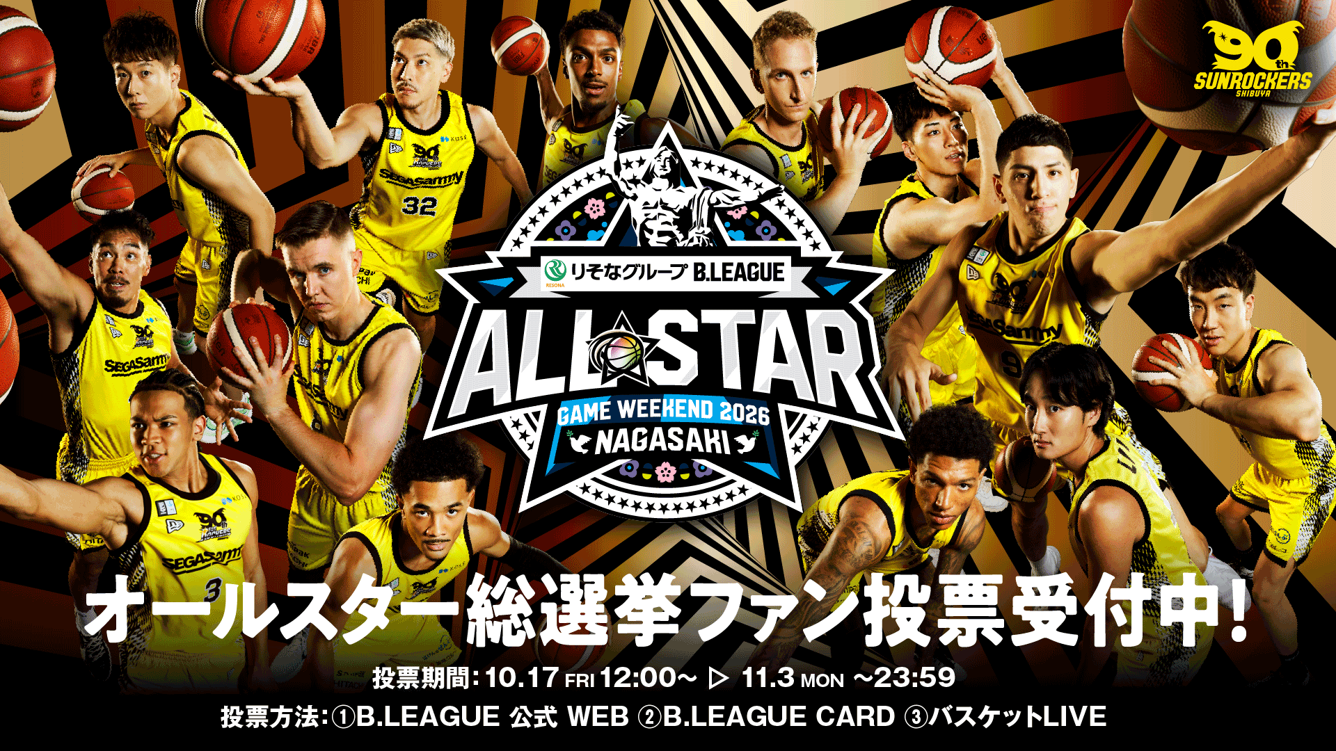 現在、出場選手を選出する「オールスター総選挙」のファン投票を実施中です!投票期間は 10月17日(金)12:00 ~ 11月3日(月・祝)23:59 となります。