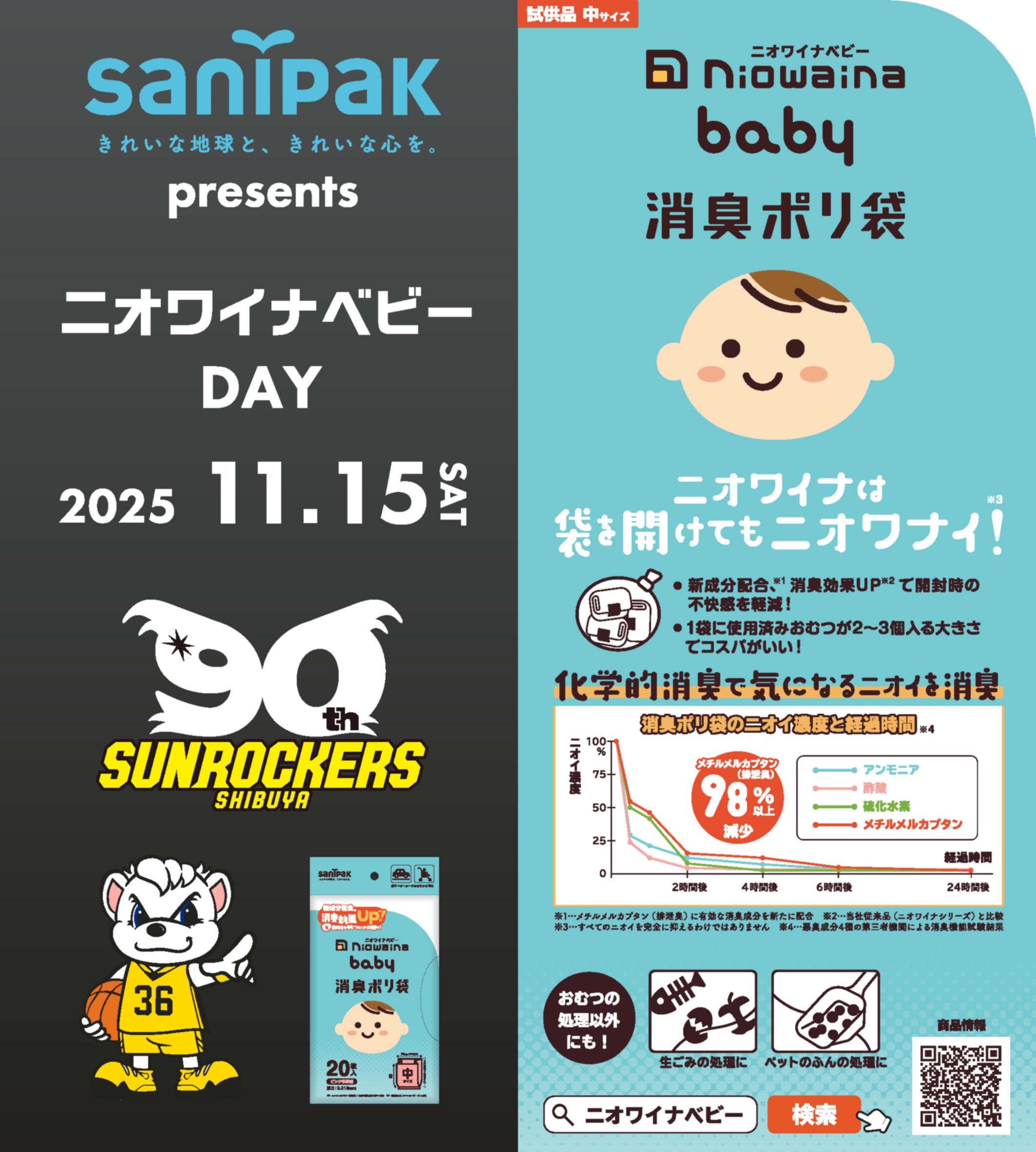 サニパックの公式LINEへお友達登録いただいた方限定で先着300名様へ「消臭ポリ袋『ニオワイナベビー』」をプレゼントいたします。