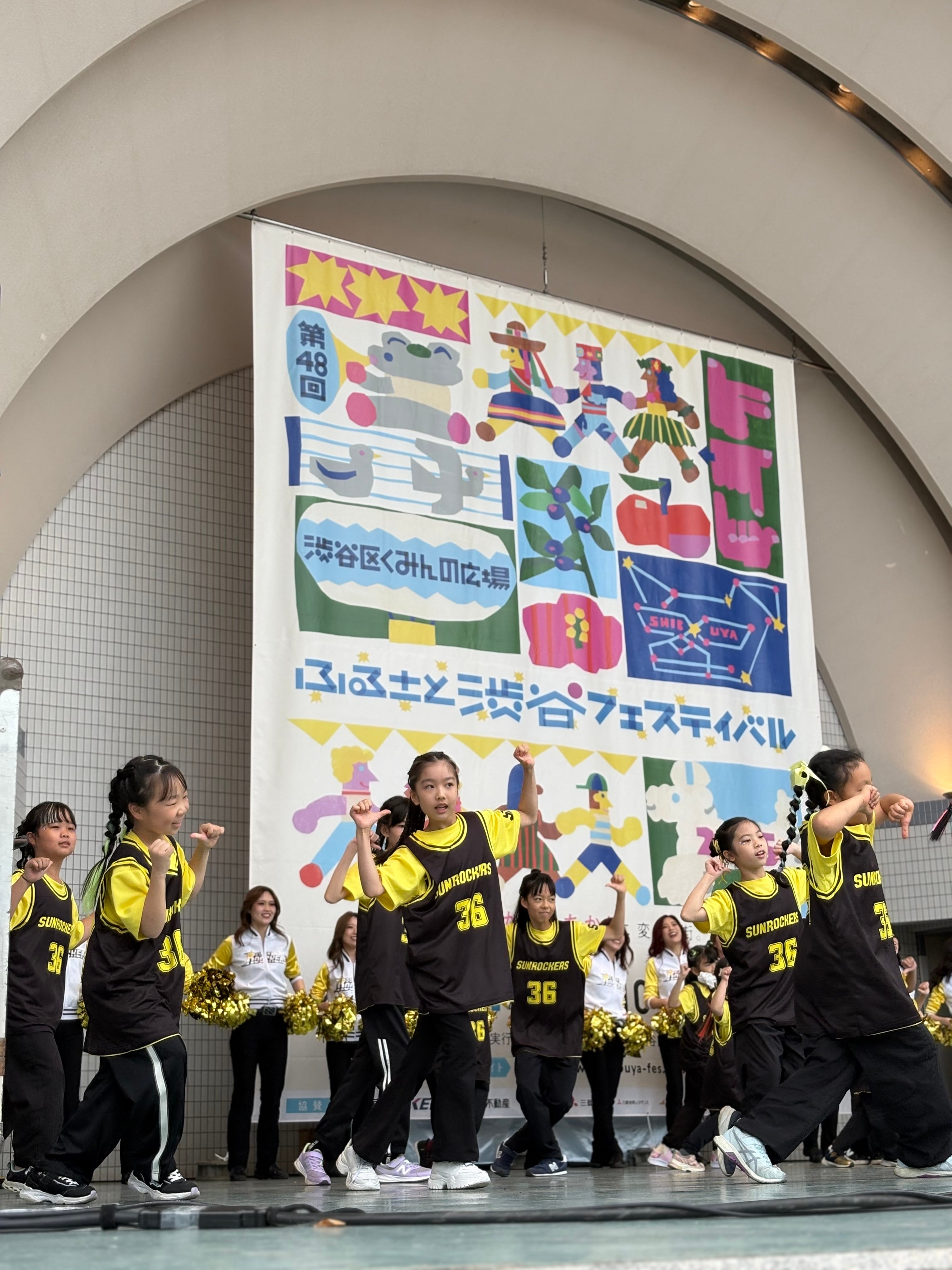 2025年11月1日(土)・2日(日)代々木公園球技場内他で開催された「第48回渋谷区くみんの広場 ふるさと渋谷フェスティバル」に、サンロッカーズ渋谷が参加しました。サンロッカーガールズとサンロッカーズダンススクール生のパフォーマンス、ナインフープス体験ブースなどを通じて、地域の皆さまと楽しいひとときを共有しました。