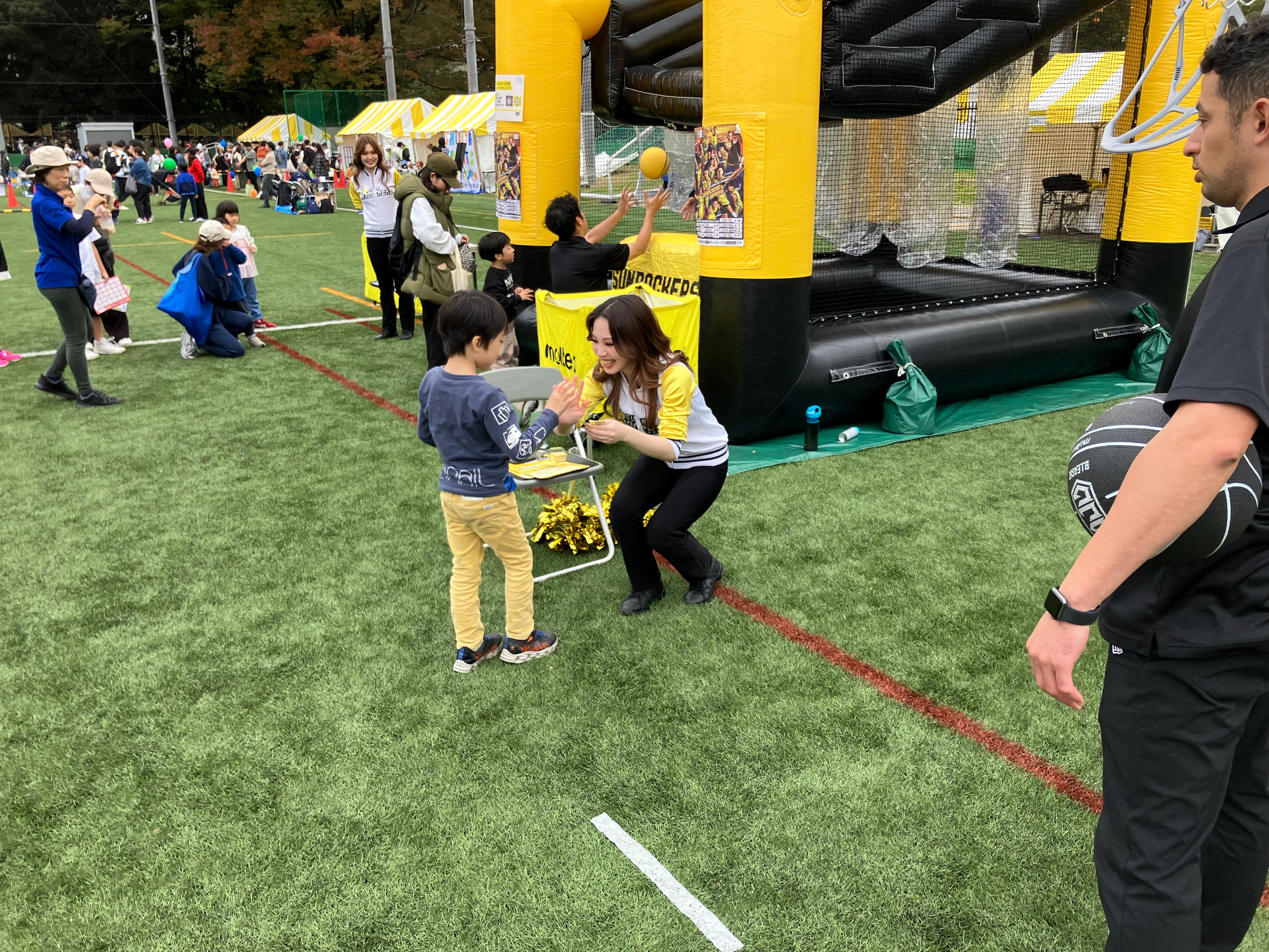 サンロッカーズブースでは、ナインフープスを設置し、来場されたご家族連れや小さなお子さまに楽しんでいただき貴重な交流の場となりました。二日間を通して笑顔あふれる時間をありがとうございました。