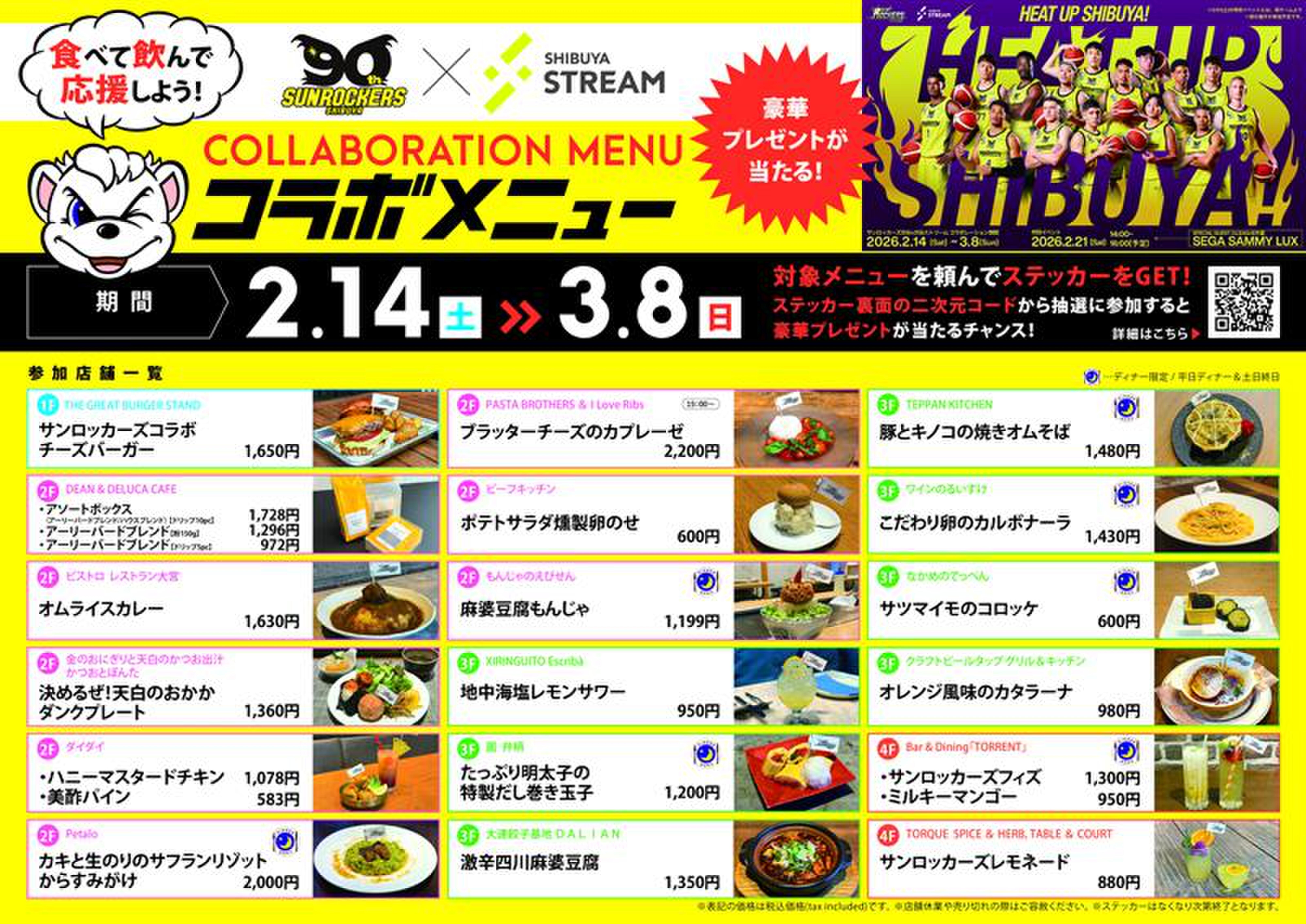 【サンロッカーズ渋谷×渋谷ストリーム】「HEAT UP SHIBUYA!」コラボキャンペーン開催!!2/21(土)1DAYイベントやコラボメニュー販売も!