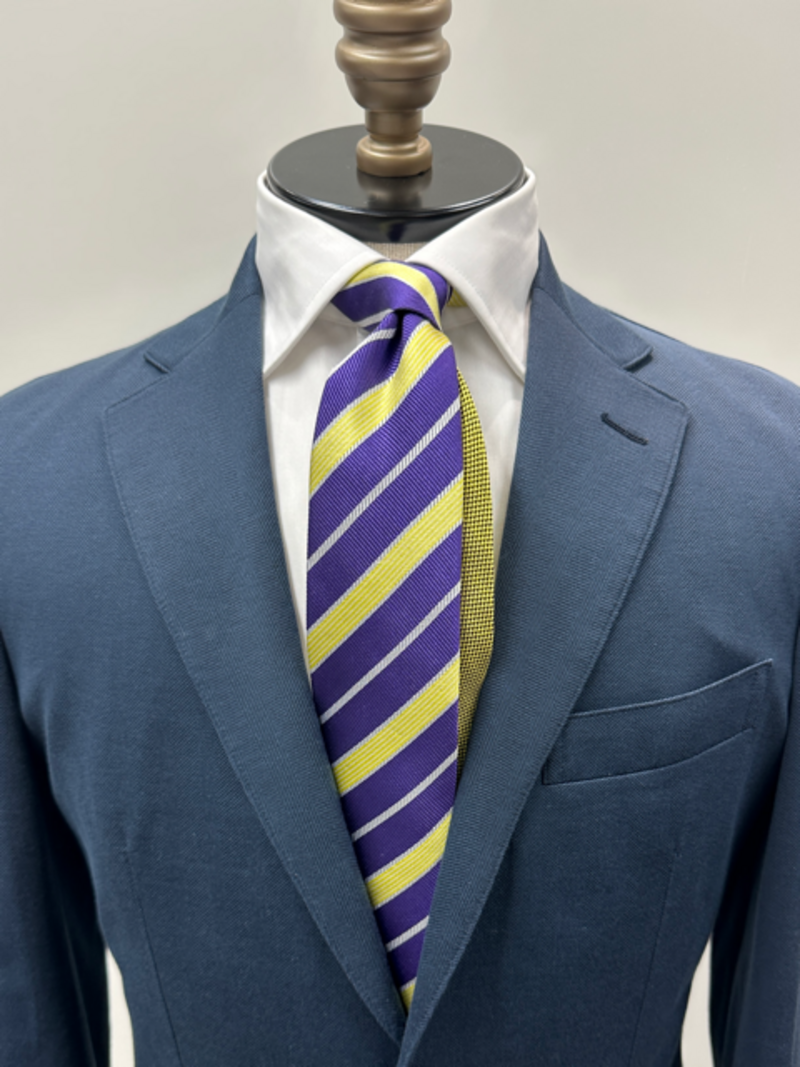 サンロッカーズのチームカラーであるイエローとホームタウンである渋谷区のイメージカラーであるパープルをストライプで採用したレジメンタルタイとなっており、ビジネスシーンなど日常使いに落とし込みやすいデザインです。