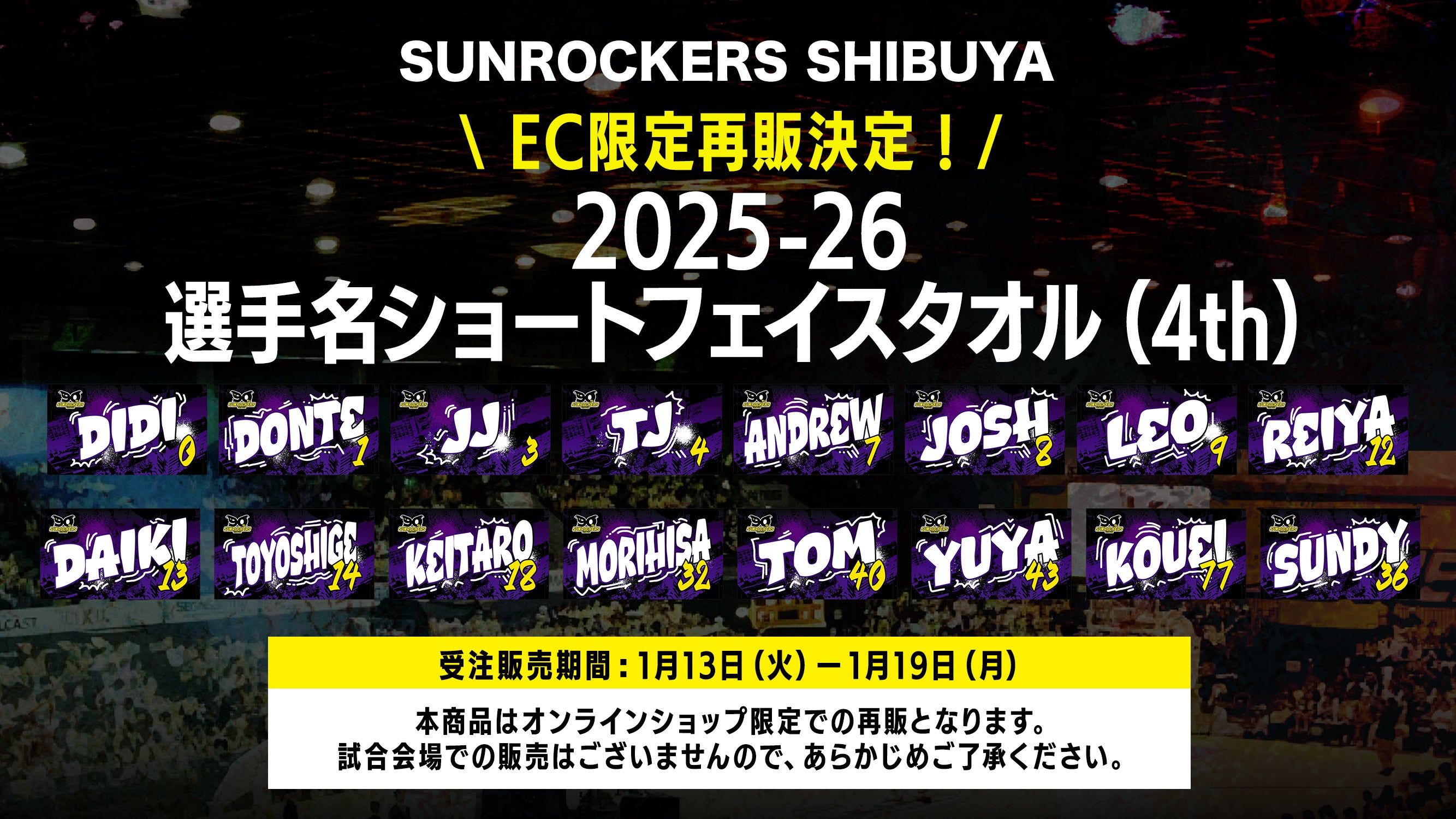 2025-26 選手名ショートフェイスタオル(4th)EC限定 再販決定のお知らせ