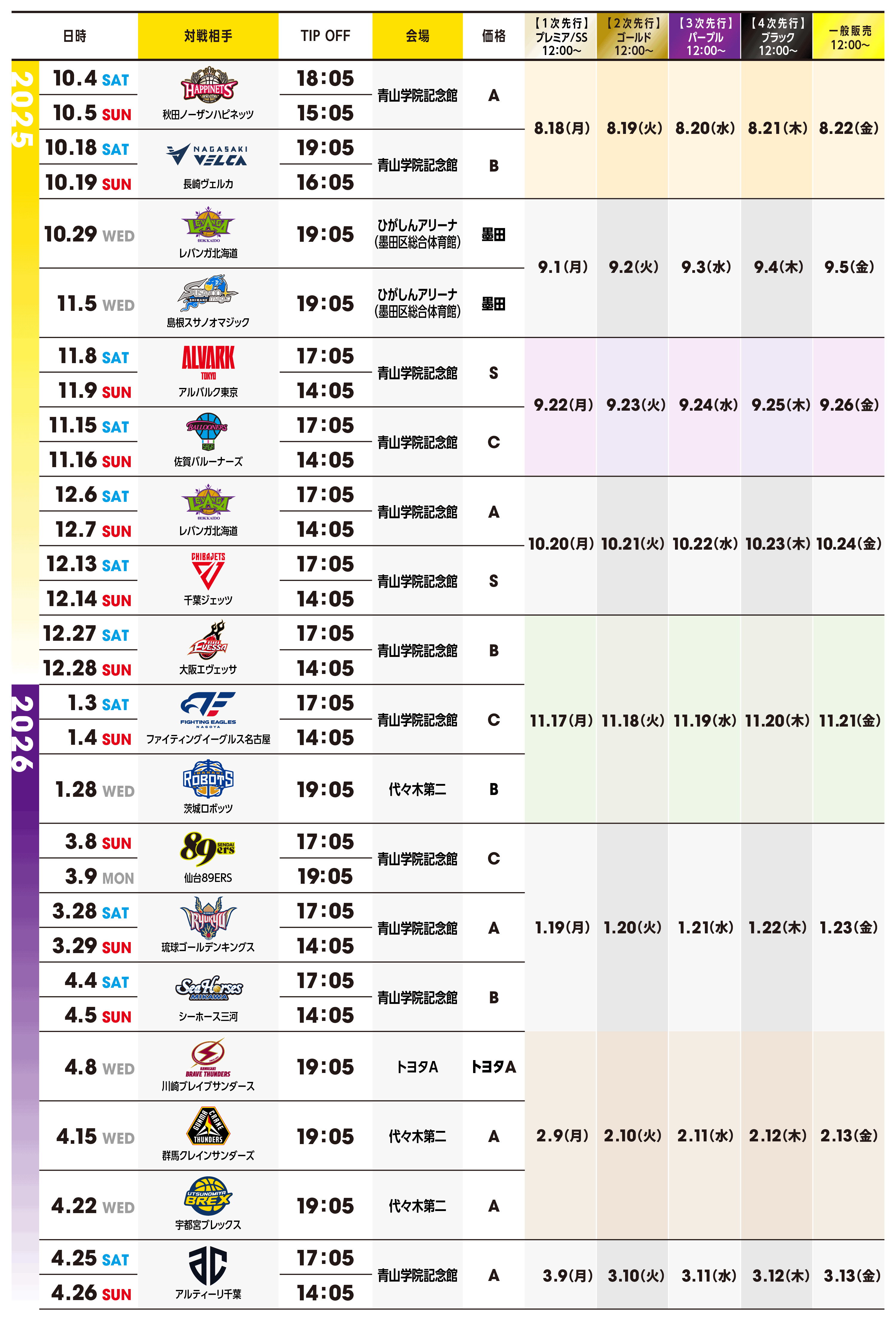 - シーズンシートご契約者さまには、シーズンシートご購入時のメールアドレス宛に、別途先行販売サイトをご案内いたします。